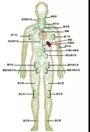 图一是人体的淋巴系统,和人的血管一样,布满全身,淋巴管像血管一样,里面充满了像血液一样的淋巴液。它是血管的帮手,在人体中周而复始的运送着营养液,不断循环。