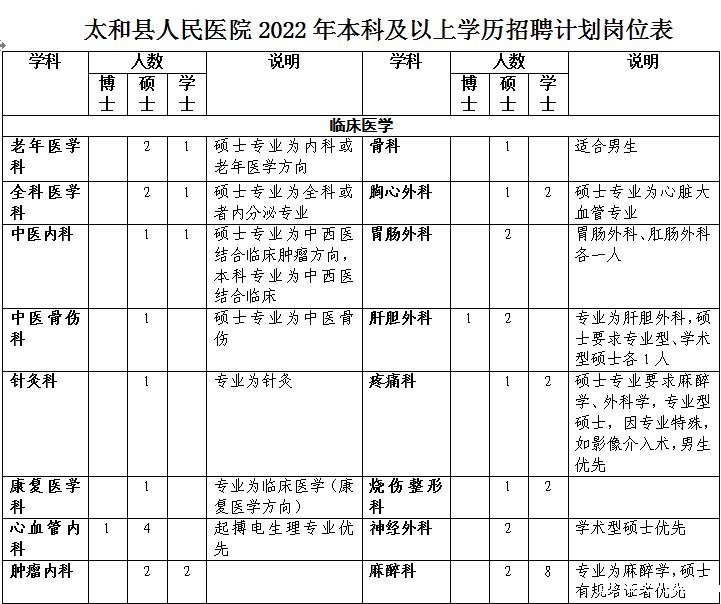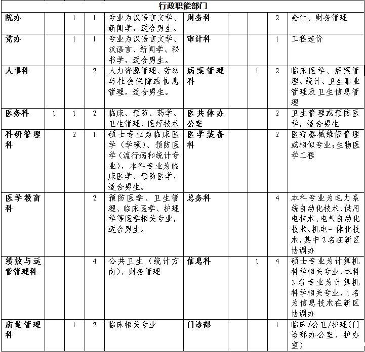 ①各招聘岗位具有硕士、中级职称和执业资格者优先录用;博士待遇面议;