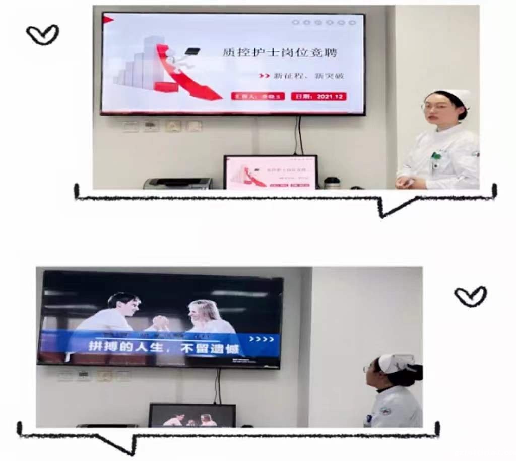 本次共有九名N2、N3及N4的护士依次按顺序参与竞聘,大家精心准备5-10分钟的演讲,从个人简介、岗位认知、竞聘优势及工作计划等全面展示,述职内容客观实际,结合工作案例分享,她们镇定自若,自信满满,激情洋溢,用简单和平凡的话语述说着对护理工作的热爱。演讲结束后,由各位评委老师依次做出点评、打分,并寄予美好期望。