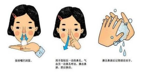 因此,我们提倡正确的擤鼻方法:擤鼻涕时身体前倾,用手指按住一侧鼻孔,稍用力向外擤出对侧鼻孔的鼻涕,用同法再擤另一侧。如果鼻腔发堵鼻涕不易擤出时,可先用鼻液滴鼻,待鼻腔通气后再擤。