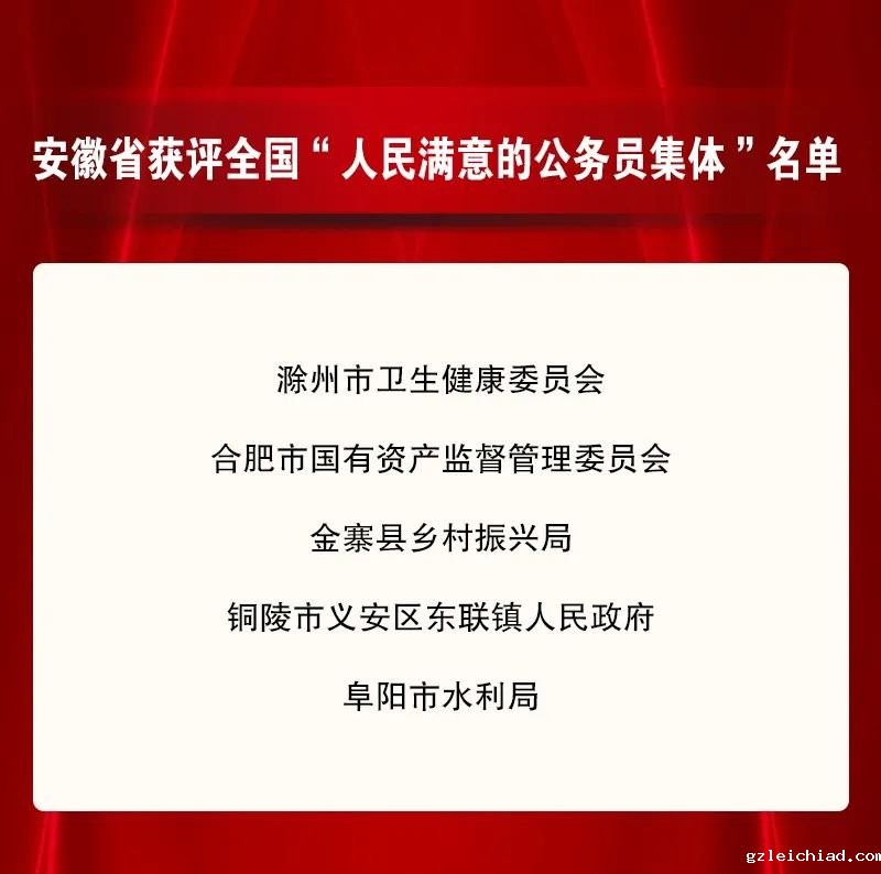 皖公网安备 34122202000155号 技术支持:太和万联网络 8月30日,全国“人民满意的公务员”和“人民满意的公务员集体”表彰大会在北京举行。我省11名个人、5个集体荣获表彰。据悉,今年是首次以党中央、国务院名义开展这项表彰活动。