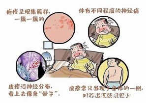 带状疱疹中医病名为蛇串疮,老百姓俗称“缠腰蛇”,两广地区多叫“生蛇”,是由水痘-带状疱疹病毒感染引起的,皮疹表现为红斑、簇集小水疱、血疱,甚者破溃糜烂,常伴有神经痛症状(多为刺痛、跳痛、烧灼感),也有表现为瘙痒、麻木感、蚁行感等神经感觉异常症状。因皮损和神经症状沿神经节走向呈带状分布,故名“带状疱疹”。
