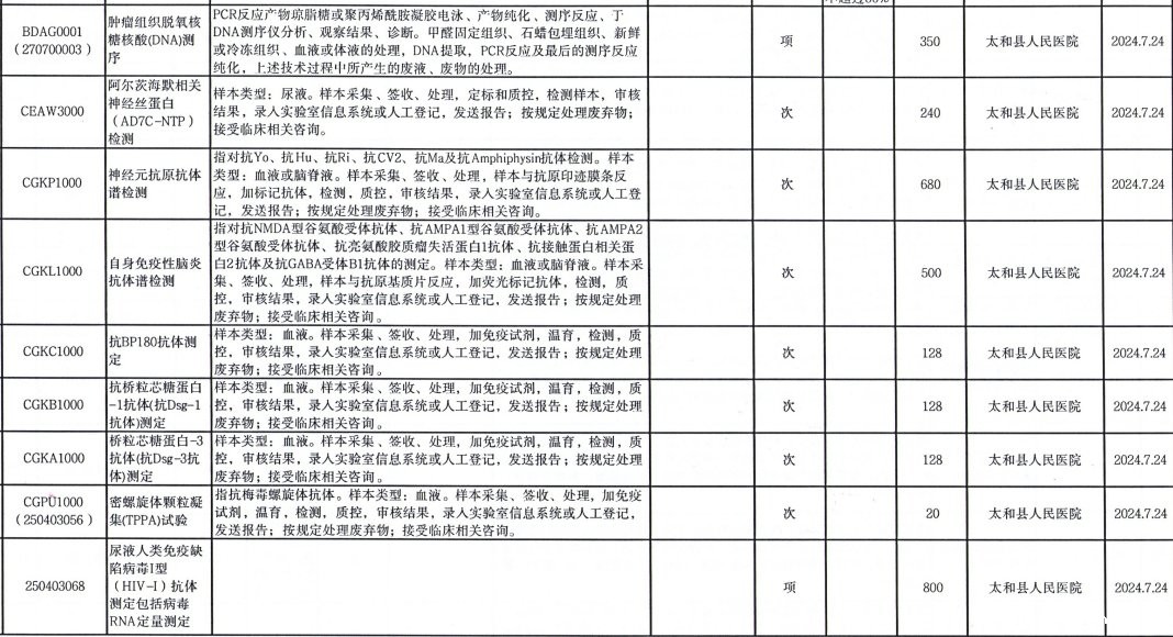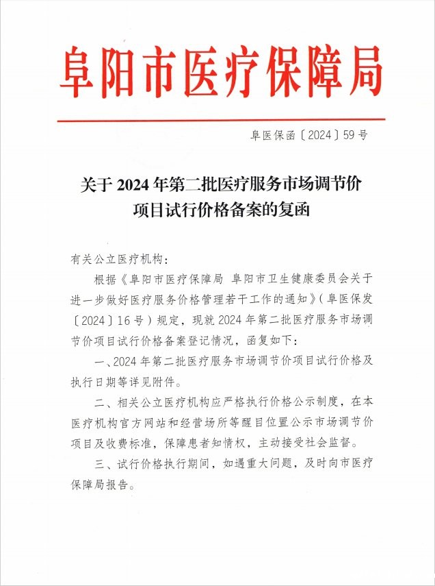 阜阳市第二批医疗服务市场调节价项目试行价格